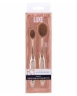 Børstene har et lekkert design, i rosa gullfarge, og kan brukes til både flytende og fast sminke samt hudpleieprodukter. De faste hårene på børstene sørger for at de ikke mister formen over tid.